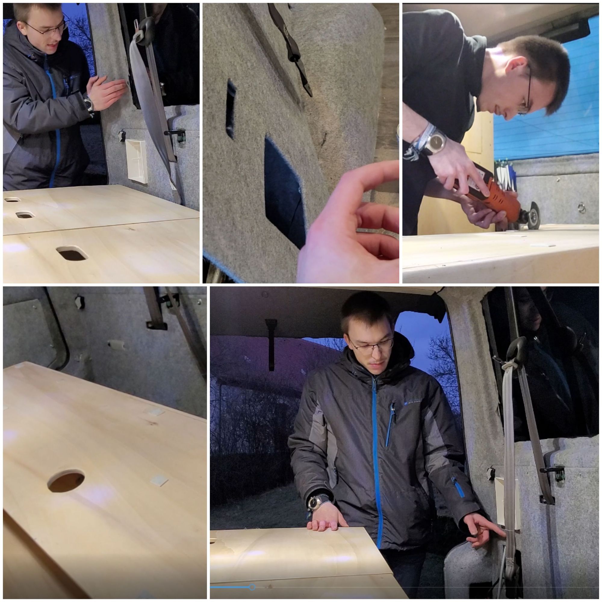 Der Platz, der nun vorhanden ist, weil die Sitzbänke nicht mehr da sind, hat mir so gut gefallen, dass ich mir eine Erweiterung überlegt habe. Ich möchte einen Schrank haben und einen B2B Sitz an den Beifahrersitz montieren. Somit ist das Auto immer noch für drei Personen funktionsfähig und hat noch mehr Platz gewonnen. Durch die große Auflagefläche des neuen Konzepts kann man auch super im Auto am geöffneten Fenster kochen. Ein Nachteil hat das Ganze aber. Ich habe nun nicht mehr meine Liegefläche von 1,40 Breite auf 2,40 Länge wie vorher. Nun ist die Liegefläche 1,40 auf 1,80m. Auch damit kann man schauen wie es sich handhabt.
