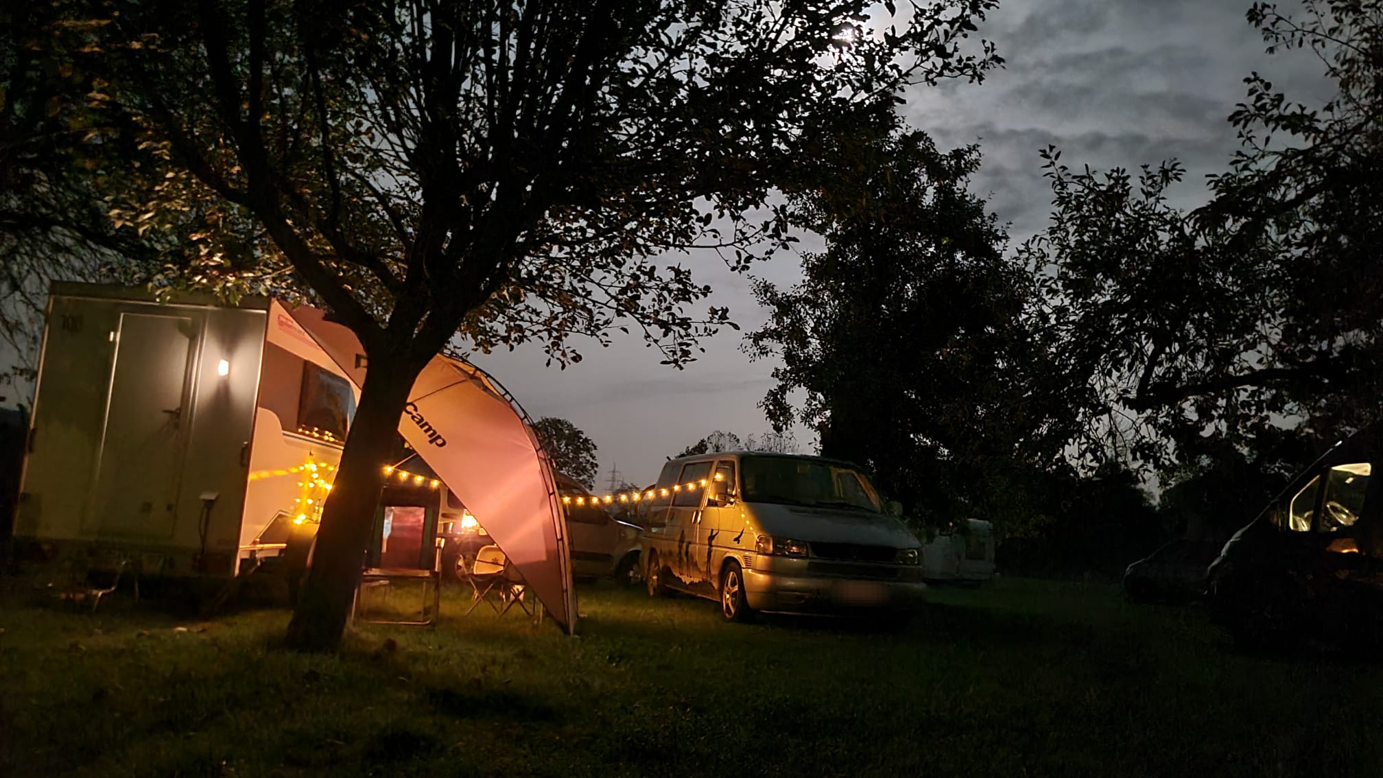 Dieses Jahr war ich zwei Mal im Allgäu. Beide Male habe ich mich mit einem Freund dort getroffen, bzw. wir sind gemeinsam gefahren. Dort haben wir uns immer ein kleines Basecamp gebaut und es uns gemütlich gemacht. Die Fahrzeuge und Anhänger standen nun in einem kleinen Kreis und haben uns so vor Wind und Blicke geschützt.