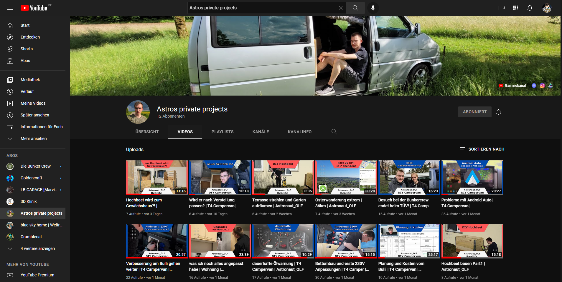 Auf dem Hauptkanal kommen weiterhin regelmäßig Gamingvideos. Der neue Kanal ist hauptsächlich für Reallifekontent. Hier lade ich alle Videos zum Bulli und zu meinem Leben hoch.